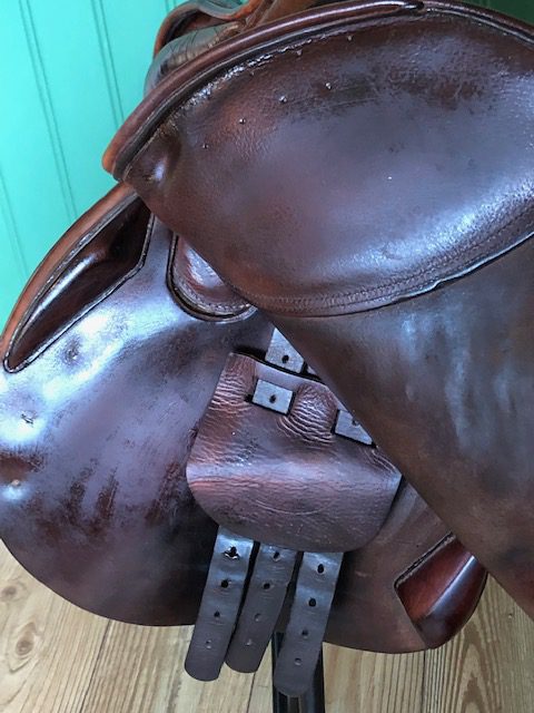 Ett fynd för dig som letar en kvalités sadel till en mindre peng? Sadeln har lite eftersatt puts hos tidigare ägare, så den är lite torr i lädret och lite ytliga små “kattklös märken”.