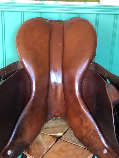 En flatbacksadel från Forestier, hög kvalité på både arbete och läder. Likvärdig med tex. Butet sadlarna.